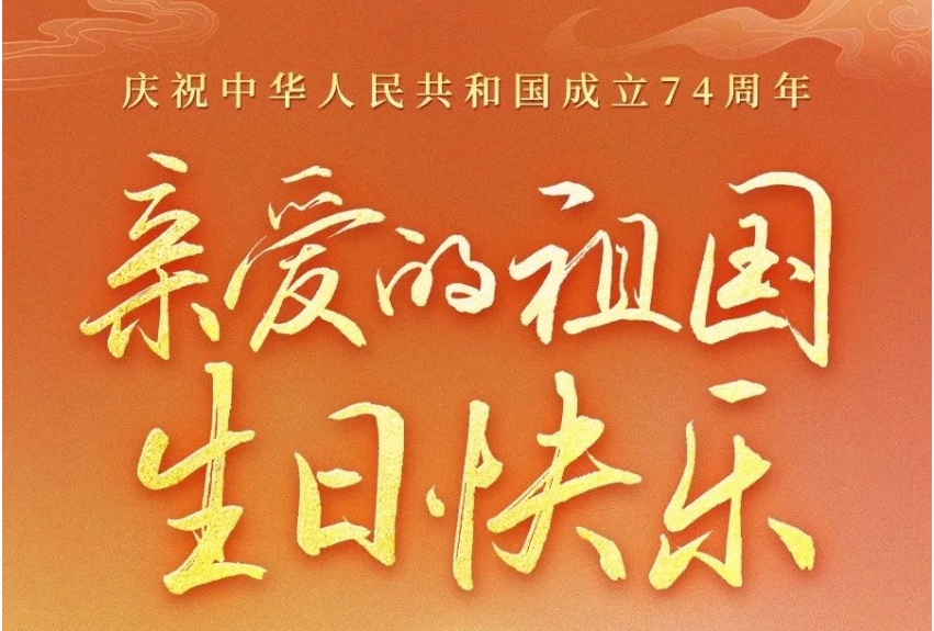 74年風(fēng)雨兼程74載山河巨變一起祝福偉大祖國(guó)生日快樂(lè)、繁榮昌盛!今天之中國(guó)我為你驕傲目光所至家國(guó)共好祝親愛(ài)的祖國(guó)生日快樂(lè)!