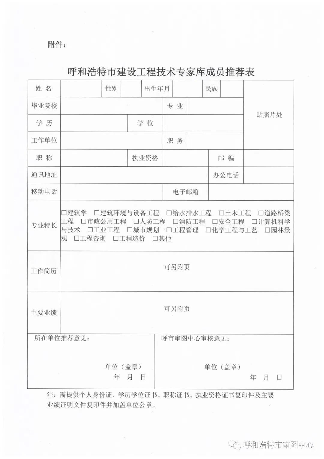 呼和浩特市建設(shè)工程技術(shù)專家庫(kù)成員推薦表